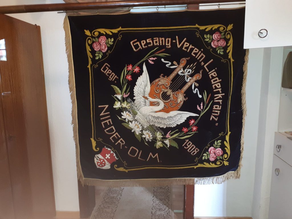 Zu unserem 80-jährigen Jubiläum möchte wir die historische Fahne von 1908 restaurieren und damit ein Stück Nieder-Olmer Geschichte erhalten. Knappe 120 Jahre haben an dem wertvollen Stück Spuren hinterlassen, und sie kann so nicht mehr öffentlich gezeigt werden. Die Restaurierung durch eine Fachfirma wird sich auf ca. 8000 Euro belaufen. Deshalb sammelt der Liederkranz Spenden! Unsere historische Fahne kann dann wieder bei den Veranstaltungen wie Volkstrauertag, Sebastianustag, Konzerten und. Festzügen gezeigt werden und die lange Gesangstradition bezeugen. Wir von Liederkranz freuen uns über freundlich zugedachte Zuwendungen, die natürlich steuerlich absetzbar sind. Weitere Informationen beim 1. Vorsitzenden Alexander Kreisel: 1vorsitzender@gvliederkranzno.de